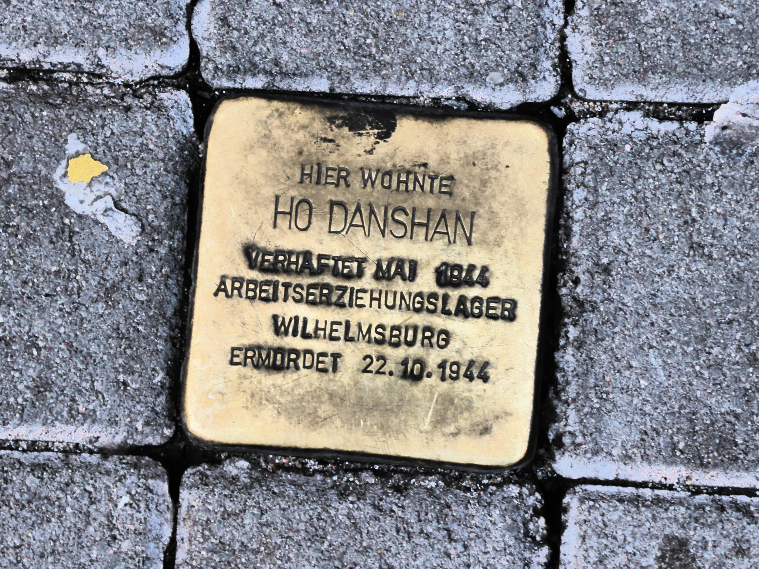 Ein Stolperstein für einen ermordeten Chinesen aus der Schmuckstrasse auf St. Pauli